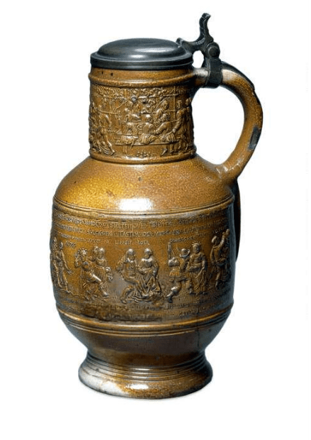 Right: Raeren Jug – workshop Jan Emens Mennicken – 1576 – British Museum