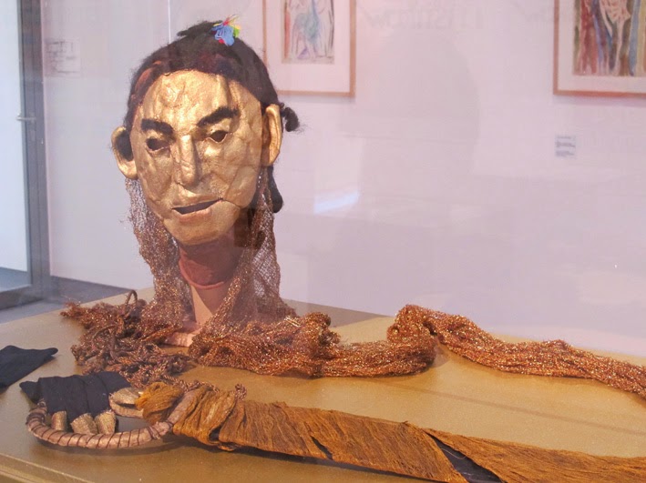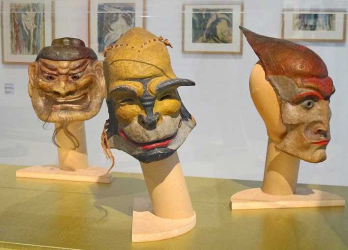 The left photo shows Gertrud Leistikow wearing an African mask created by Hildo Krop. (c.1921 – Allard Pierson Museum, Amsterdam). On the right there are three masks by Hildo Krop. All the masks are made of papier-mâché. This photo was taken during an exhibition devoted to Gertrud Leitsikov in the Museum Kranenburg (2014). Directly above the masks there are four artworks by Harmen Meurs, some of which I discussed above. I found the photo on the blog Il faut voyager. The centre mask was used in Groteske (1926) and the mask on the right-hand side for the Fanatieke dans /Fanatical dance (1922).
