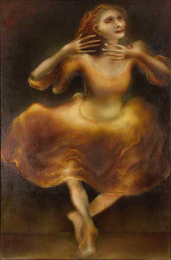 ** I must point out that there is a smaller, comparable painting, also titled Pavane, with an almost identical dancer. The colour palette resembles the larger painting. Deeper hues, however, accentuate an intense, sombre atmosphere. The dancer’s expression is grotesque.