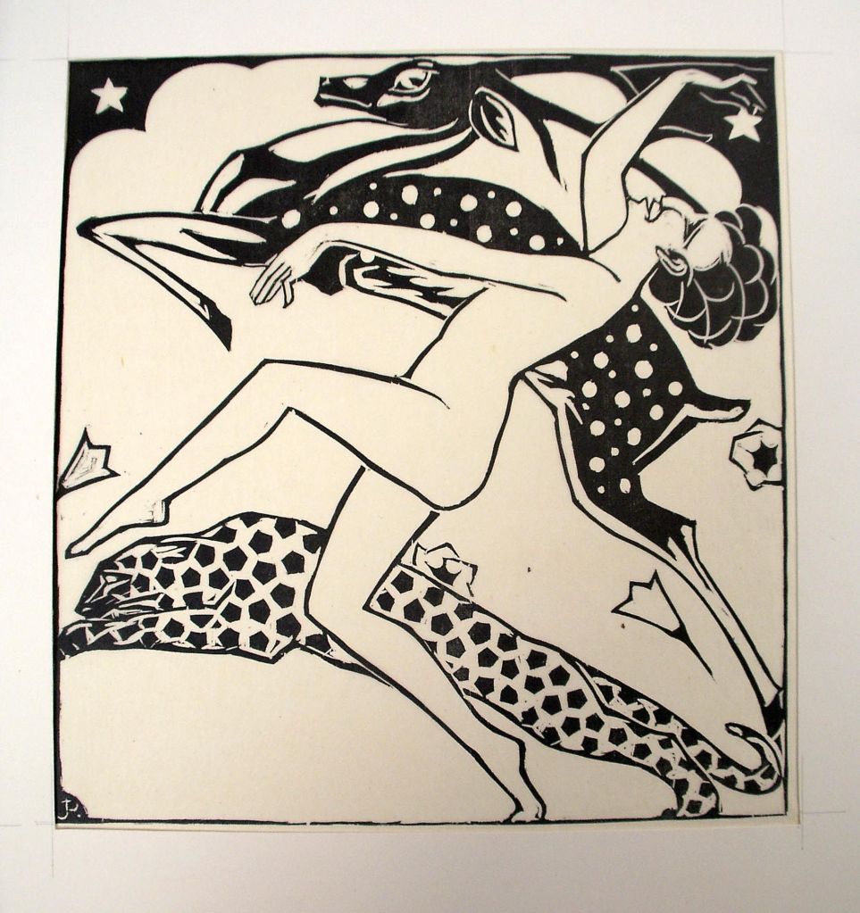 Johan Polet (1894-1971), a contemporary of Hildo Krop and Jan Rädeker, created the woodcut Dance for a Dutch periodical, Wendingen. The magazine was published from 1918 until 1933 and dealt specifically with contemporary architecture, art, and design. Each edition was devoted to a unique theme. The image illustrated below appeared in a 1919 edition that focussed exclusively on modernistic woodcutters.